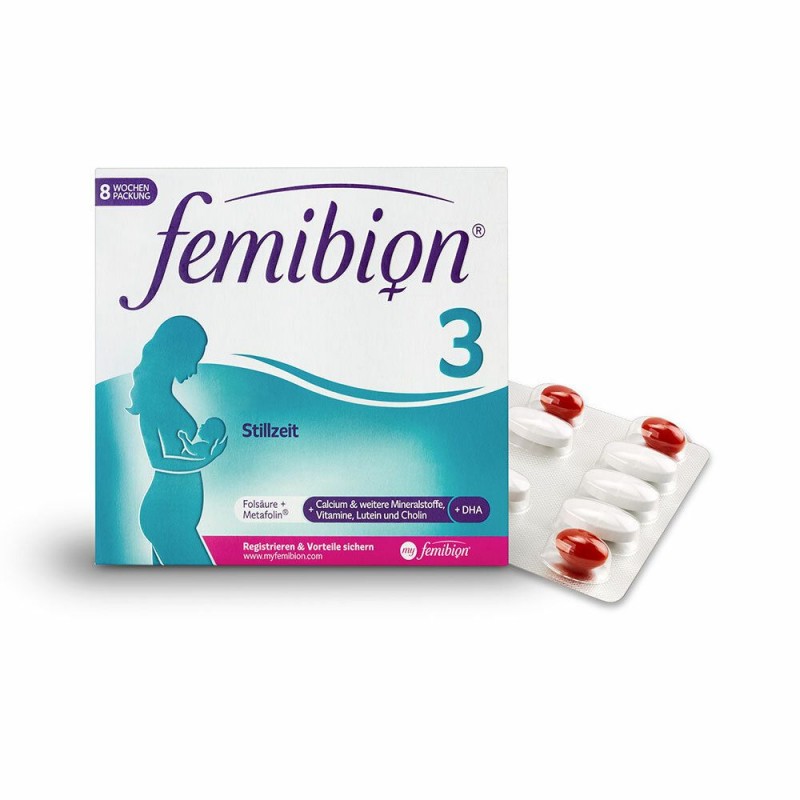 FEMIBION® 3 ALLAITEMENT, spécialement développé pour les besoins nutritionnels particuliers de vous et de votre bébé pendant l’allaitement. Femibion® 3 contient l’acide gras oméga-3 DHA pour le développement sain du cerveau et des yeux de votre bébé. Femibion® contient également Folic Acid Plus et d’autres nutriments sélectionnés tels que la vitamine D et l’iode - spécialement développés pour vos besoins nutritionnels et ceux de votre enfant pendant l’allaitement.